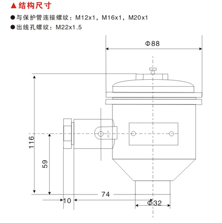 與保護(hù)管連接螺紋:M12x1,M16x1,M20x1