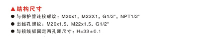與保護(hù)管連接螺紋: M20x1,M22x1, G1/2", NPT1/2"