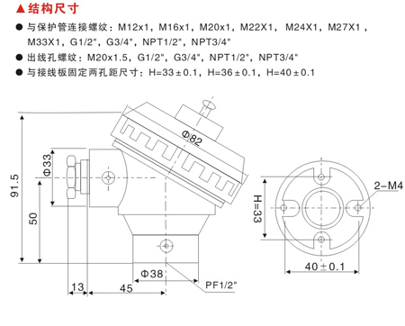● H =33±0.1的可以裝配國(guó)外接線版或溫度轉(zhuǎn)換器與國(guó)際接軌。