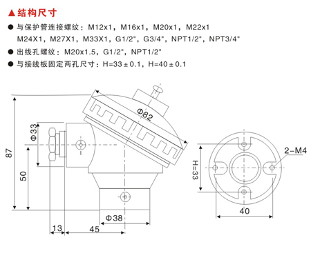 與接線板固定兩孔距尺寸: H =33±0.1,H=40±0.1