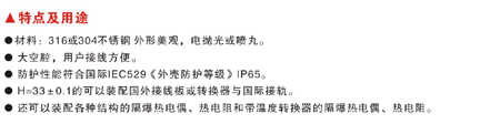 ●還可以裝配各種結構的隔爆熱電偶、熱電阻和帶溫度轉換器的隔爆熱電偶、熱電阻。
