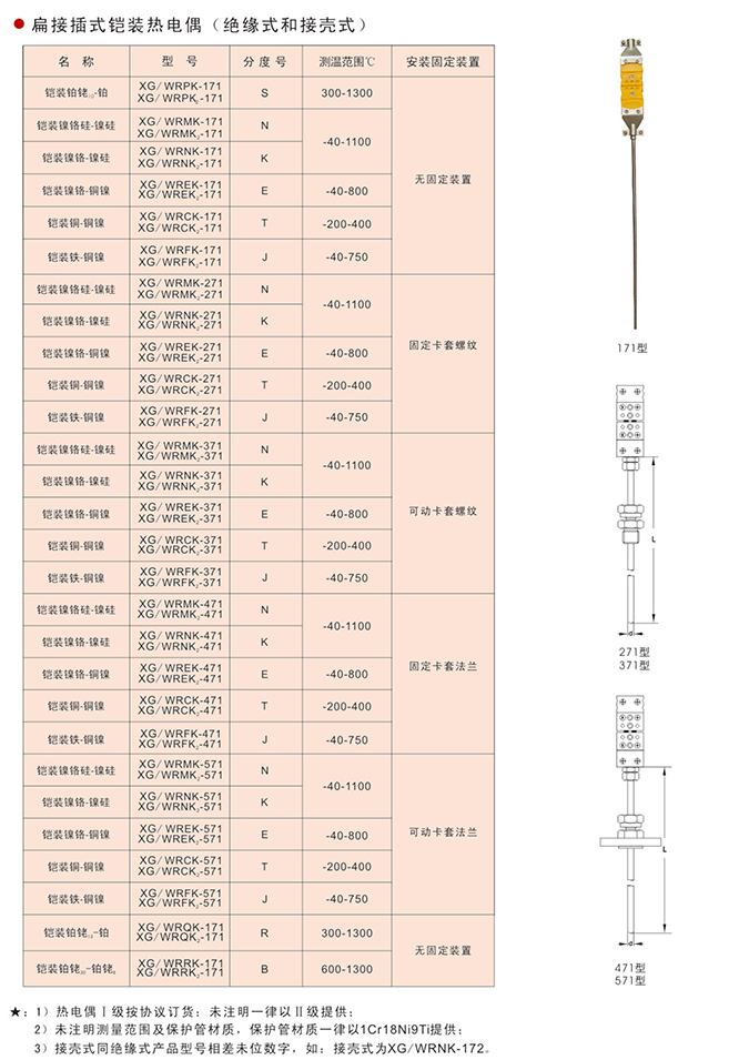 扁接插式鎧裝熱電偶是溫度測量中應(yīng)用醉廣泛的溫度器件,他的主要特點(diǎn)就是測溫范圍寬,性能比較穩(wěn)定,同時(shí)結(jié)構(gòu)簡單,動(dòng)態(tài)響應(yīng)好,更能夠遠(yuǎn)傳4-20mA電信號(hào),便于自動(dòng)控制和集中控制。另外,熱響應(yīng)時(shí)間少,減少