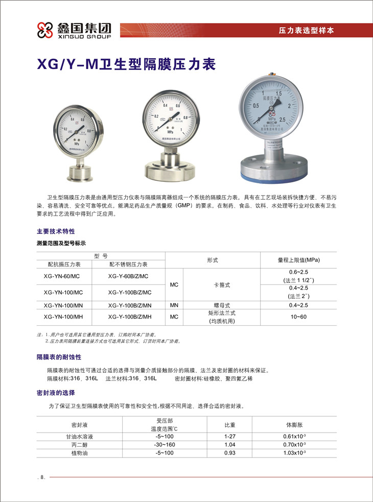 密封液的選擇:為了保證衛生型隔膜表使用的可靠性和安 全性,根據不同用途,選擇合適的密封液。
