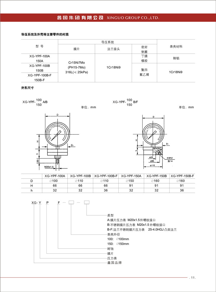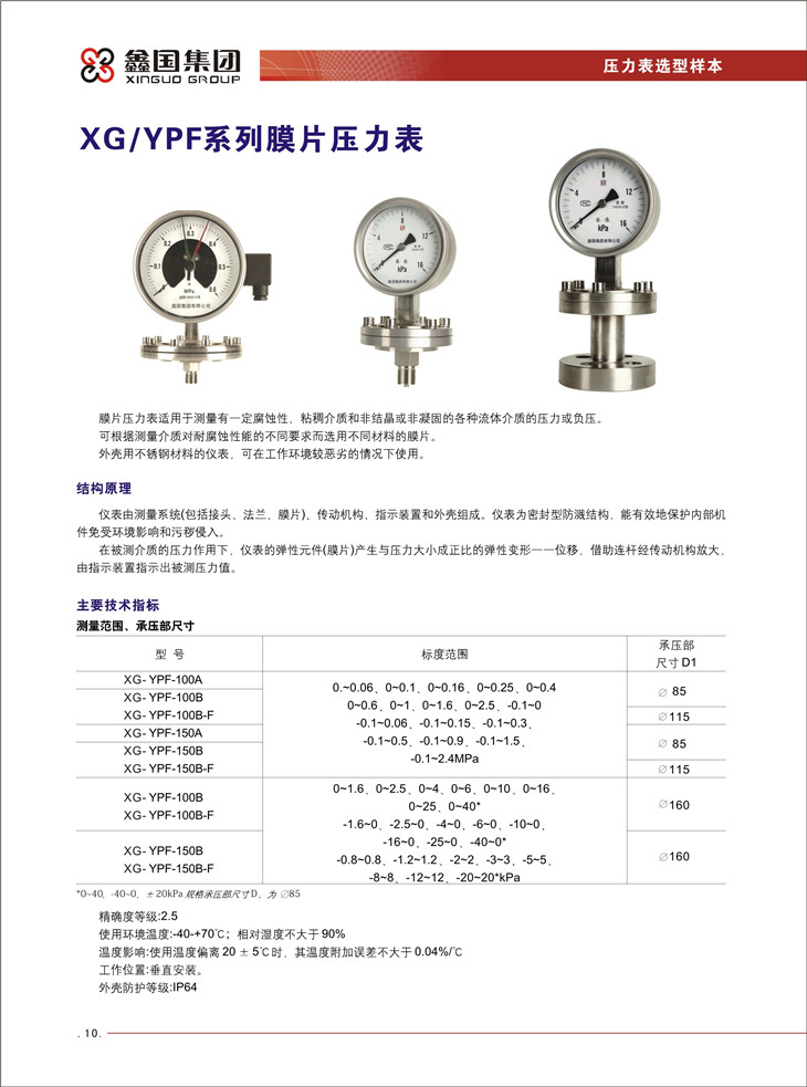 XG / YPF 系列膜片壓力表: