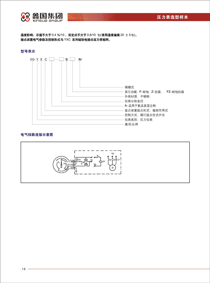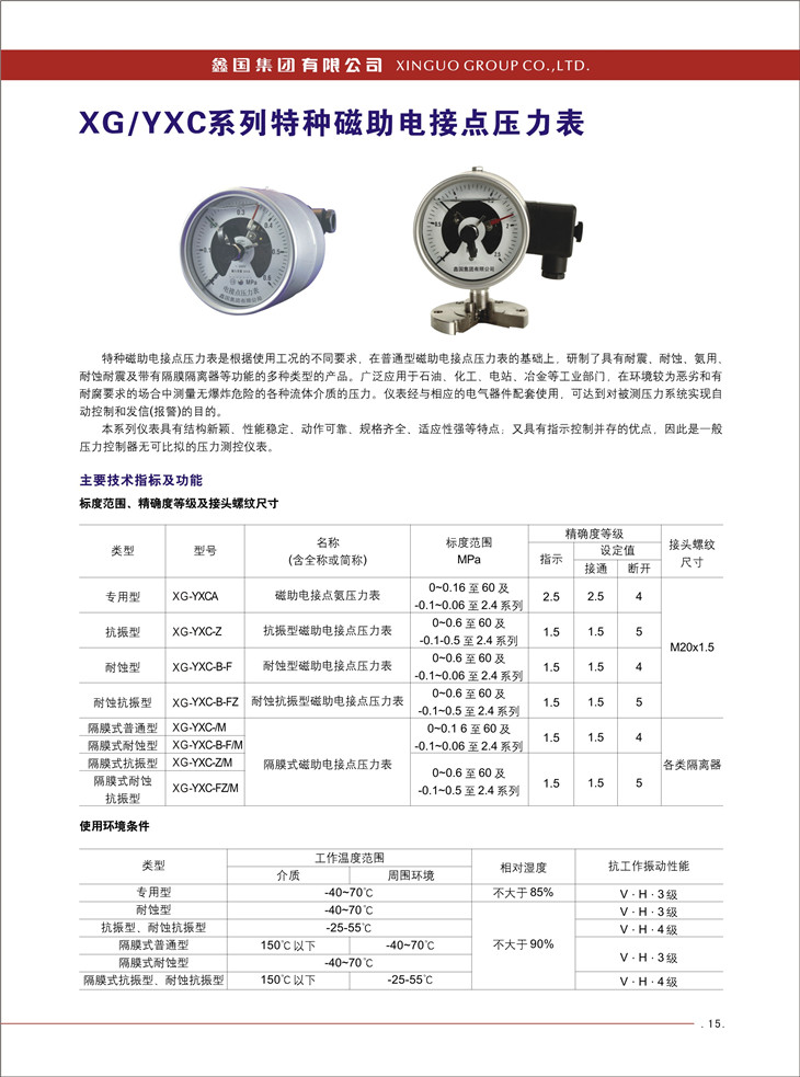 XG / YXC 系列特種磁助電接點壓力表: