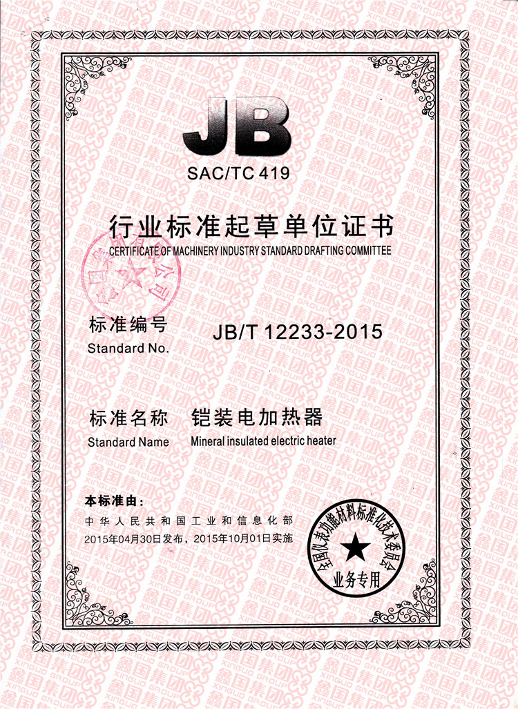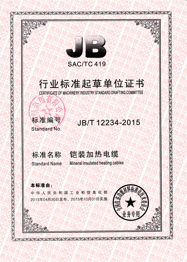 我公司成為鎧裝電加熱器、鎧裝加熱電纜行業標準起草單位