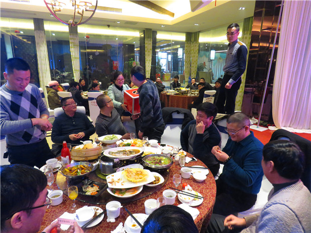總結(jié)表彰大會后,公司全體人員和部分銷售員參加了在又一村大酒店舉行的迎新春聯(lián)誼會,聯(lián)誼會現(xiàn)場進行了抽獎,部分員工表演了精彩節(jié)目。秦有國董事長致新春賀詞。